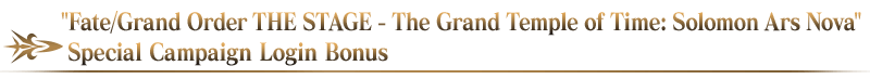 We'll be distributing a special login bonus to commemorate the online release of the stage play "Fate/Grand Order THE STAGE - The Grand Temple of Time: Solomon Ars Nova".