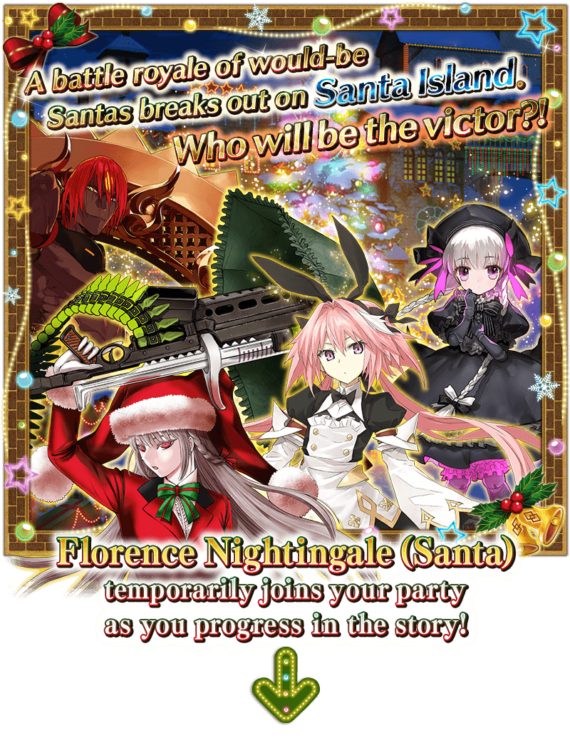 Event Limited Servant "★4 (SR) Florence Nightingale (Santa)" will temporarily join your party as you progress in the Main Quest.