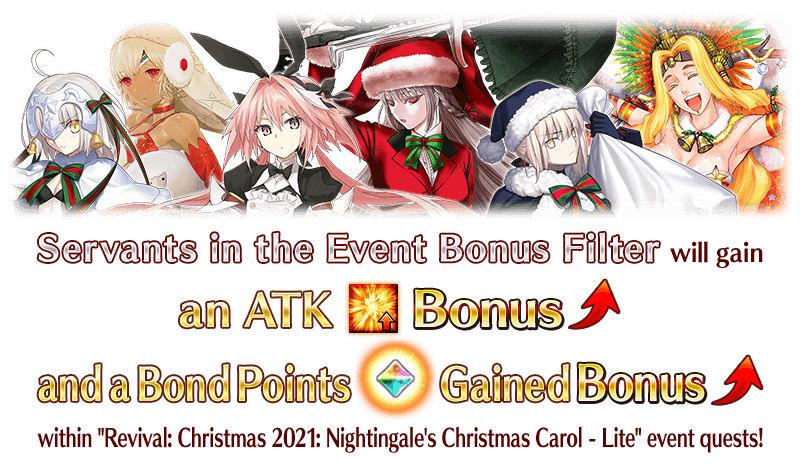 If you got "★4 (SR) Florence Nightingale (Santa)" in the original Limited Time Event "Christmas 2021: Nightingale's Christmas Carol", bonus rewards will be available in this event.