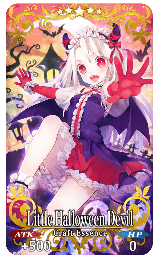 ★★★★★SSR Little Halloween Devil ATK 500 (MAX: 2000) HP 0 Skill Increase NP Gain by 20% & begin battle with NP charged at 50% for yourself |