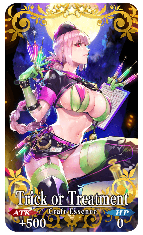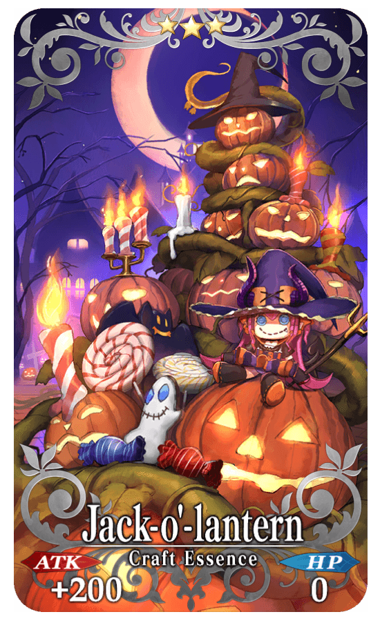 ★★★★★SSR Trick or Treatment ATK 500 (MAX: 2000) HP 0 Skill Increase NP Gain by 25% & Critical Strength by 15% for yourself |