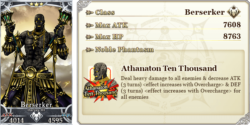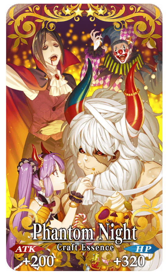 ★★★★SR Phantom Night ATK 200 (MAX: 750) HP 320 (MAX: 1200) Skill Increase Buster Card effectiveness by 10% & NP Gain by 5% for yourself |