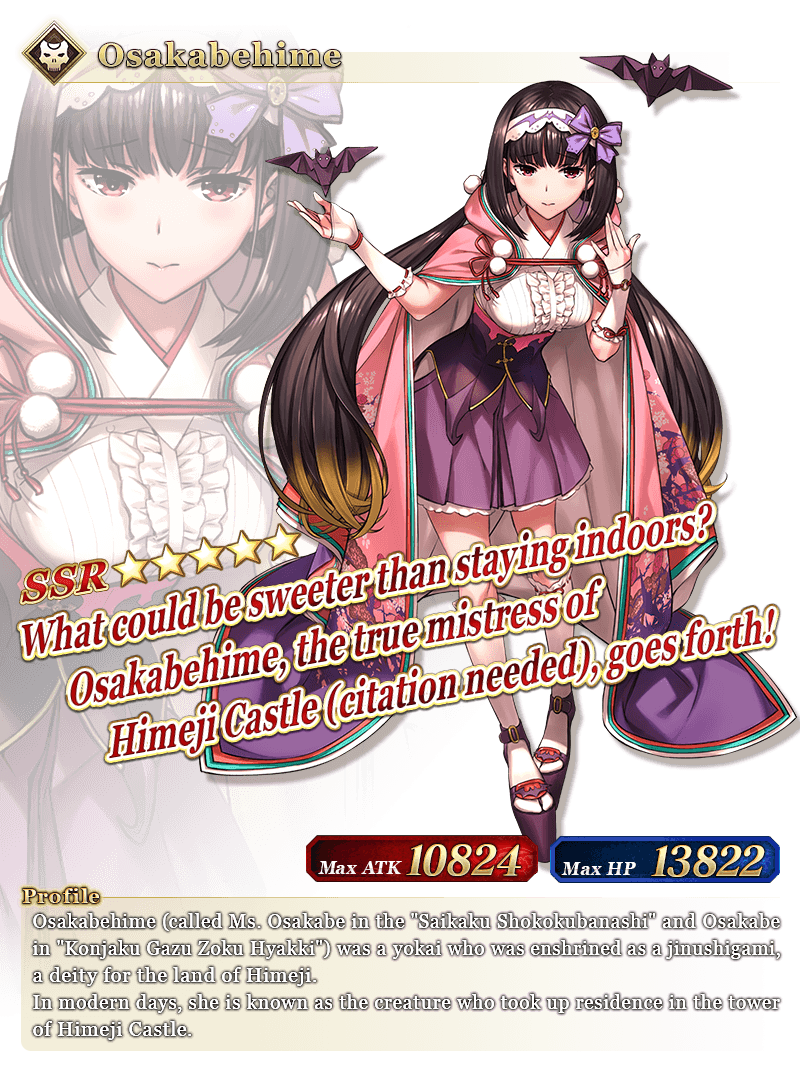 ★5 Osakabehime (Assassin) ★4 Elisabeth Báthory (Lancer) ★4 Ibaraki-Douji (Lancer) |
