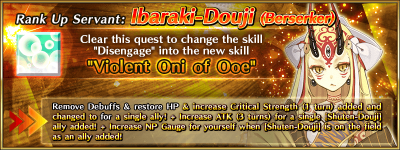 "Servant Rank Up Quests" to strengthen "★5 (SSR) Sakata Kintoki (Berserker)", "★4 (SR) Katou 'Black Kite' Danzo", and "★4 (SR) Ibaraki-Douji (Berserker)" will be permanently added to Chaldea Gate.