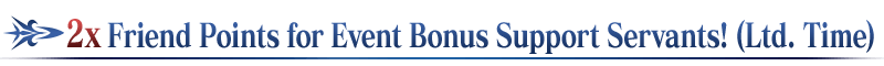 Campaign-related Servants will grant double Friend Points when you select them as Support Servants or other Masters select them from your Support Setup during the period below.
