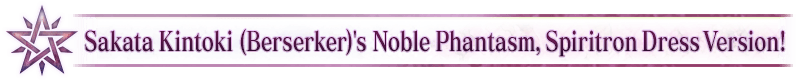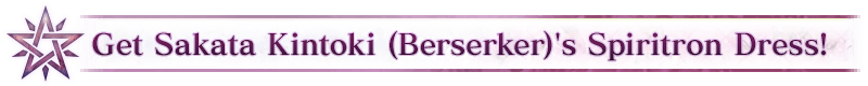 About Spiritron Dress Wardrobe Keys: * The Spiritron Dress will change the appearance and some voice lines for "★5 (SSR) Sakata Kintoki (Berserker)". * If you do not own "★5 (SSR) Sakata Kintoki (Berserker)", you can still acquire the Spiritron Dress Wardrobe Key, but it will not be usable.
