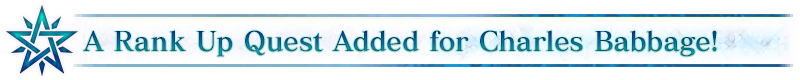 A Special "Servant Rank Up Quest" for "★3 (R) Charles Babbage" will become permanently available in Chaldea Gate.