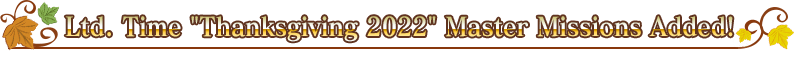 In addition, Limited Time "[Thanksgiving 2022] Missions" will be available within the "Ltd.Time" tab on the "Master Missions" screen during the period below.