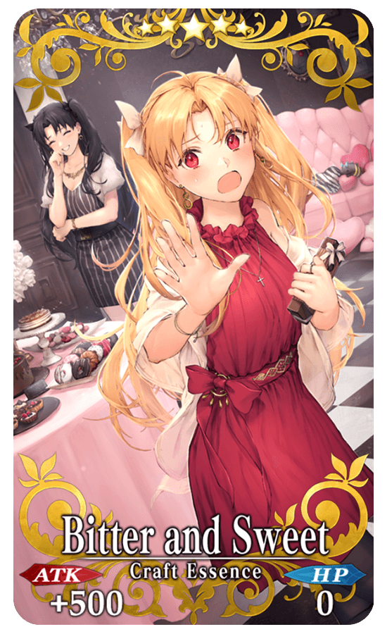 ★★★★★SSR Bitter and Sweet ATK 500 (MAX: 2000) HP 0 Skill Apply Invincible (2 times) & increase NP Strength by 25% for yourself |
