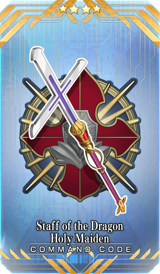 ★★★★SR Staff of the Dragon Holy Maiden Skill Increase the engraved Card's Critical Strength against [Dragon] by 30% only if the engraved Card is a Buster Card |