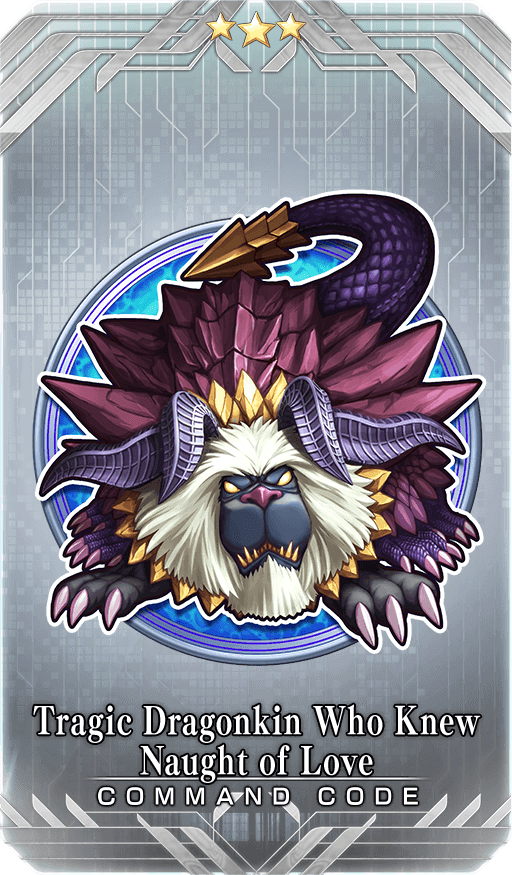 ★★★R Tragic Dragonkin Who Knew Naught of Love Skill Inflict Poison (300 damage, 3 turns) to a single enemy when attacking with the engraved Card + Increase Critical Strength by 5% to the engraved Card |