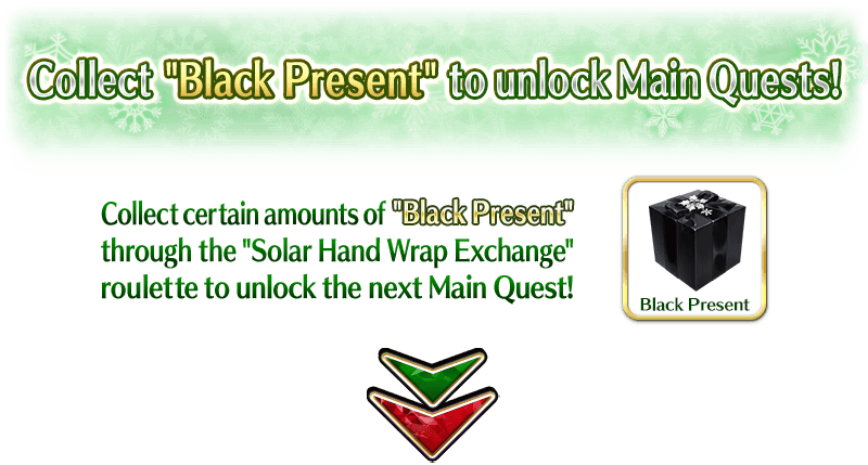 Certain amounts of "Black Present" can be used to unlock the next Main Quest, so be sure to spin the roulette and collect tons of "Black Present"!
