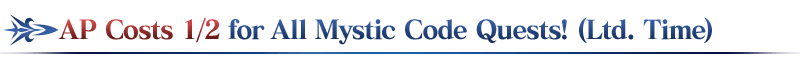 During the campaign period, all Mystic Code Quests (available within Chaldea Gate) will have 1/2 AP costs!