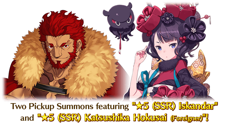 * The Pickup Summons for "★5 (SSR) Iskandar" and "★5 (SSR) Katsushika Hokusai (Foreigner)" will be separate summons.