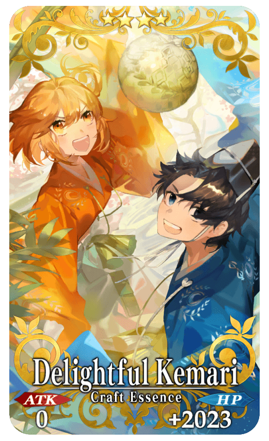 ★★★★SR Delightful Kemari ATK 0 HP 2023 (MAX: 2023) Skill Increase your Buster Card effectiveness by 8% |