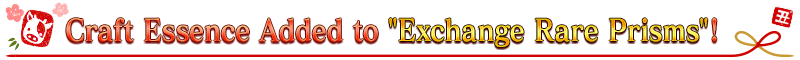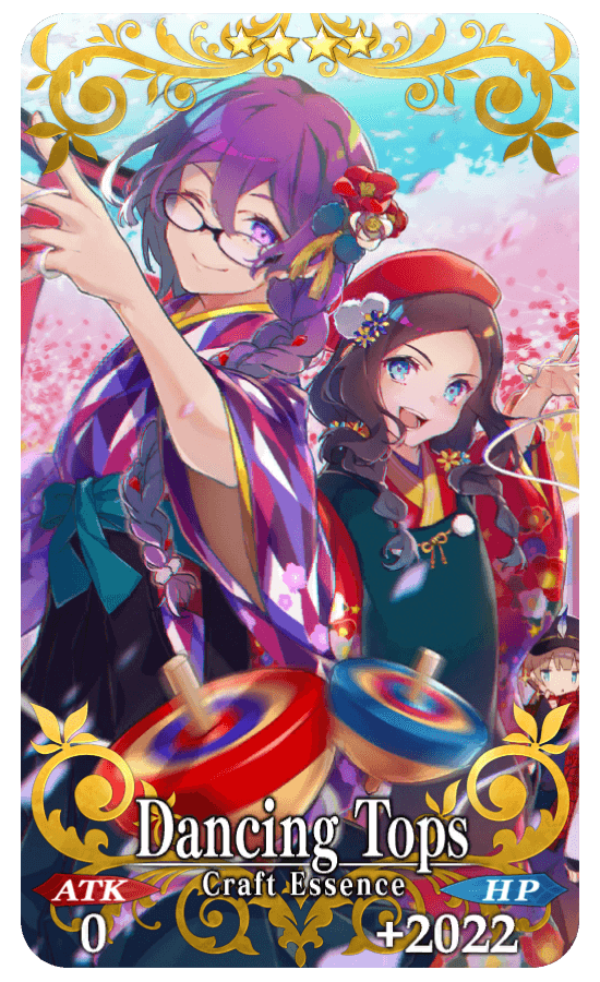 To celebrate "2023 New Year's Campaign", the Craft Essence from "2022 New Year's Campaign", "★4 (SR) Dancing Tops", has been permanently added to "Exchange Rare Prisms" in the Da Vinci Workshop.