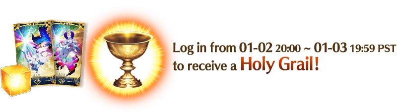 This year's login bonuses include one Holy Grail as the login bonus distributed from 2023-01-02 20:00 PST (GMT -8)!