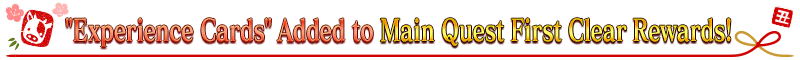 * Rewards for quests you have already cleared will be delivered to the Present Box. * There is no time limit for collecting the "Experience Cards" sent to the Present Box. * The "Additional Quest Rewards" sent to the Present Box this time will not count toward the maximum capacity of the Present Box. * Even if the Present Box is over its maximum capacity (400 slots), the "Additional Quest Rewards" will not be automatically deleted.