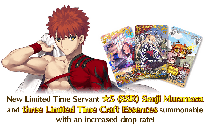 To celebrate the beginning of 2023, new Limited Time Servant "★5 (SSR) Senji Muramasa" and three Limited Time Craft Essences will be featured as a Pickup Servant and Pickup Craft Essences!