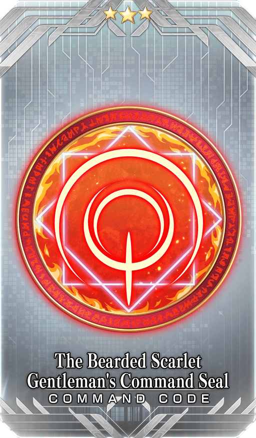 ★★★R The Bearded Scarlet Gentleman's Command Seal Skill Inflict Burn (500 damage, 3 turns) to one enemy when attacking with the engraved Card