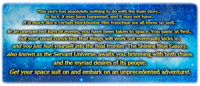 An interplanetary conflict unfolds in the "Servant Universe", a galaxy populated by Servants!