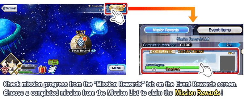 * Please note that mission rewards will not be awarded automatically when you fulfill a mission's requirements. * Please note that new missions, etc., will not be unlocked until you claim the related mission rewards.
