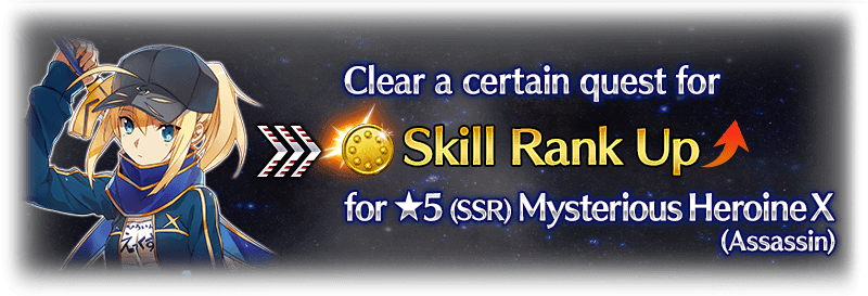 If you do not hold or have never summoned "★5 (SSR) Mysterious Heroine X (Assassin)", her skill will be already strengthened once you do acquire her if you clear this quest.
