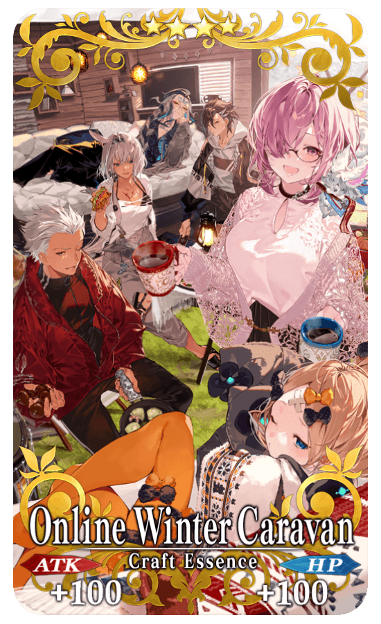 ★★★★SR Online Winter Caravan ATK 100 (MAX: 100) HP 100 (MAX: 100) Skill Increase the amount of Master EXP gained by 50 when a quest is cleared |