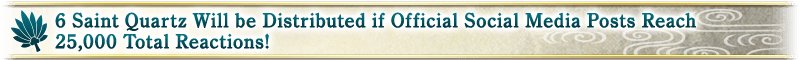 If you can help us get the Facebook and Twitter posts to a total of 25,000 Facebook Reactions/Shares and Twitter Likes/Retweets during the period below, we'll distribute 6 Saint Quartz to all Masters!