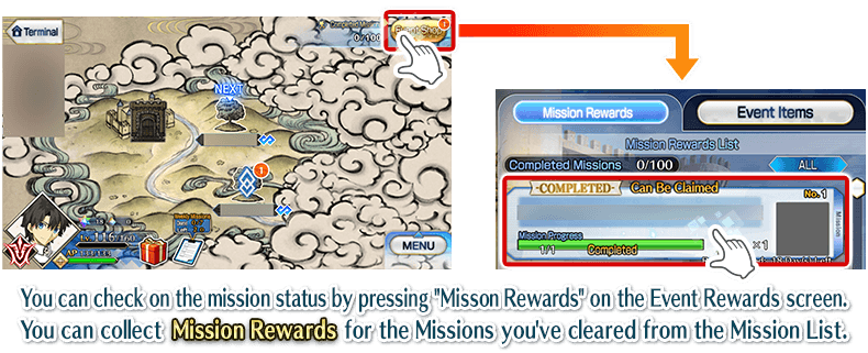 * Please note rewards will not automatically be collected when the requirements are met. * If you do not collect the mission rewards, further missions will not be unlocked.