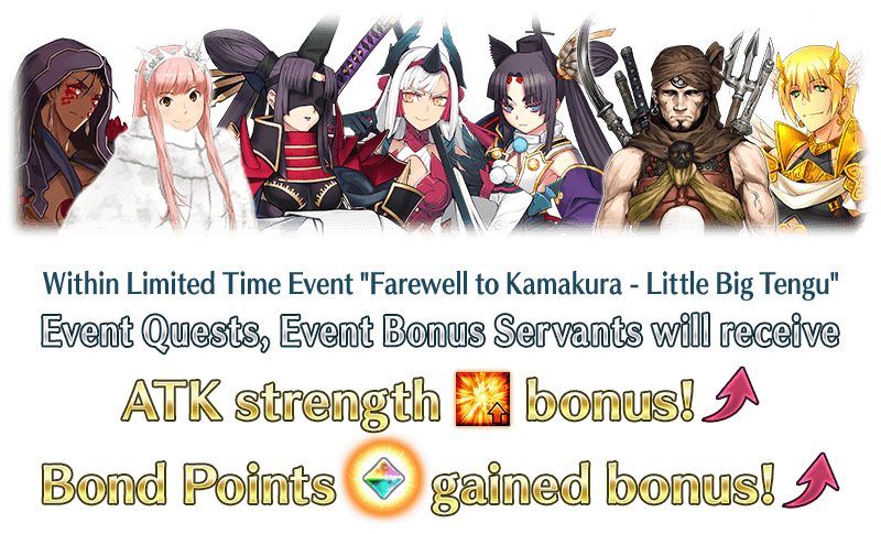 The Servants listed below will receive an ATK strength bonus and a Bond Points Gained bonus during this event!