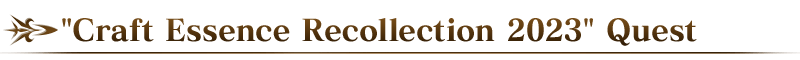 Clear the "'Craft Essence Recollection 2023' Quest", available within Chaldea Gate during the period below, to receive a Quest Limited Craft Essence!