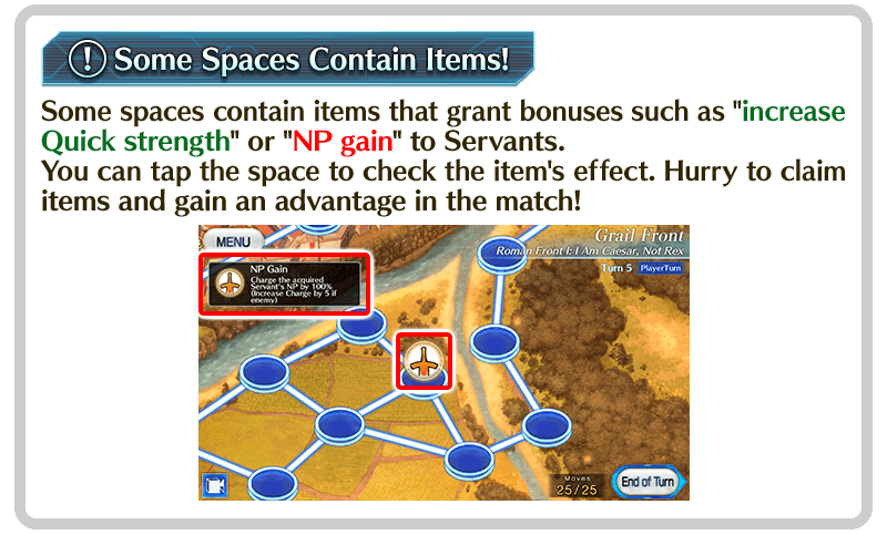 In the Player Turn, your side can perform actions on the map, and the enemy will perform actions on the Enemy Turn. The turns will repeat in order as the Grail Front progresses.