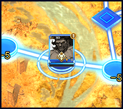 In the example above, one ally Servant and one enemy Servant are in spaces next to the target of the attack. This attack will begin a two versus two battle.