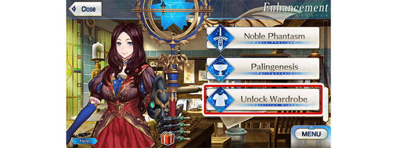 * Upon unlocking a Spiritron Dress, the Servant's battle sprite and icons will automatically be changed. You can revert back to the original appearance or change to a different Ascension level from the Servant Details screen. * "Unlock Wardrobe" will only change the eligible Servant's appearance and voice lines. Their class and all other parameters will remain the same.