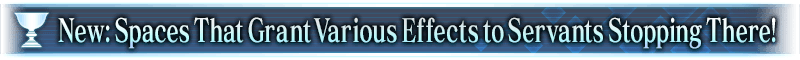 Special spaces that grant various status effects to Servants while they stop there have been added for the Limited Time Event "Grail Front - Et Tu, Brute?".