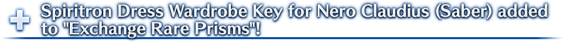 * If you do not own "★4 (SR) Nero Claudius (Saber)", you can still acquire the Spiritron Dress Wardrobe Key, but it will not be usable.
