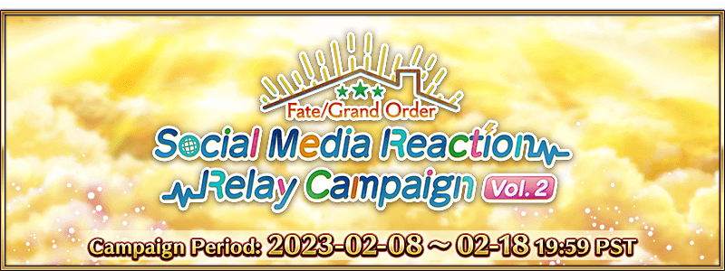To celebrate the Limited Time Event "Amor, the Preacher of Love's Saint Valentino! - Chaldea Bitter Valentine's 2023!", we’ll be holding the "Social Media Reaction Relay Campaign Vol. 2"!