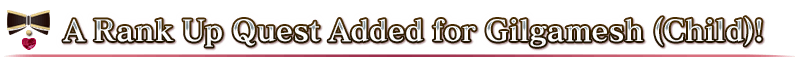A "Servant Rank Up Quest" to strengthen "★3 (R) Gilgamesh (Child)" will be permanently added to Chaldea Gate.