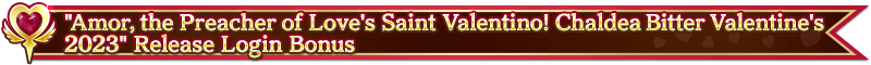To celebrate the "Amor, the Preacher of Love's Saint Valentino! Chaldea Bitter Valentine's 2023", we'll be distributing a special login bonus!