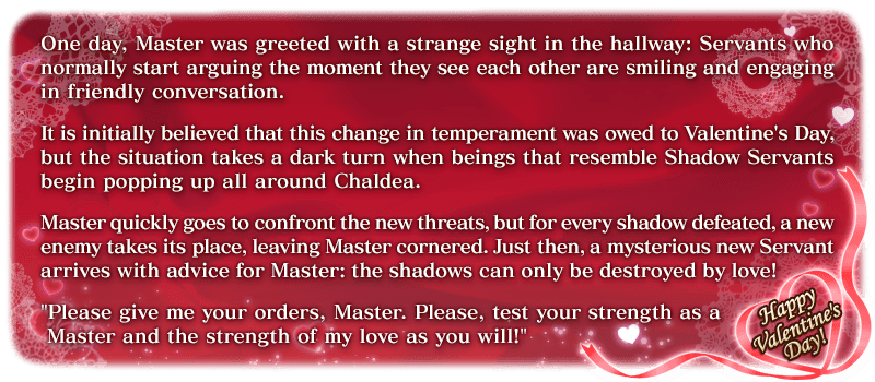 The Limited Time Event "Amor, the Preacher of Love's Saint Valentino! Chaldea Bitter Valentine's 2023" is here for a limited time!