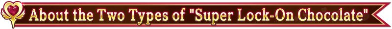 * [Warning] Only one each of "Super Lock-On Chocolate (Strawberry)" and "Super Lock-On Chocolate (Blueberry)" will be available, for a total of two. Also, you can only exchange one each in "Give Chocolates" and "Get Chocolates", so choose carefully.