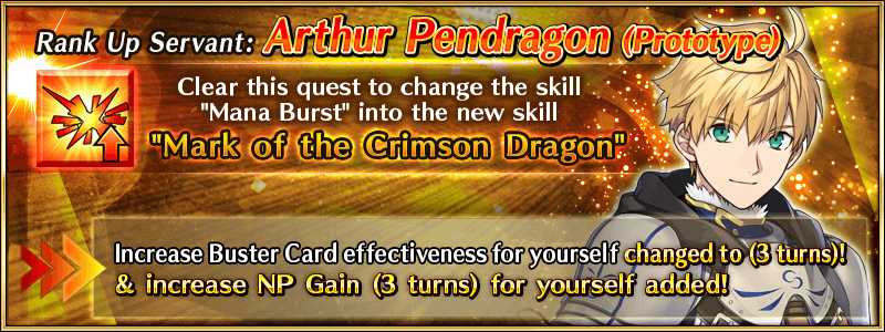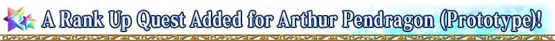 A special "Servant Rank Up Quest" for "★5 (SSR) Arthur Pendragon (Prototype)" will become permanently available in Chaldea Gate.