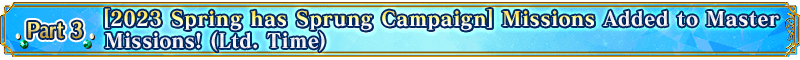 "[2023 Spring has Sprung Campaign] Missions" will be added to the "Ltd.Time" tab in "Master Missions" for the campaign period.