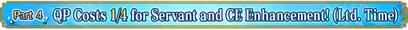 QP necessary for Servant and Craft Essence Enhancement will be reduced to 1/4 for a limited time!