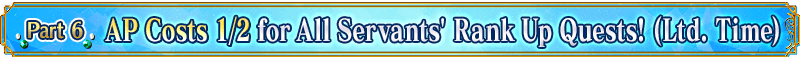 For the following period, Rank Up Quests for all Servants will have 1/2 AP costs!