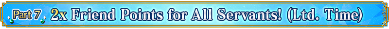 During the following period, when you select a Servant from another Master to use as support when starting a quest, or when another Master selects a Servant to use as support from you, you will earn double Friend Points!