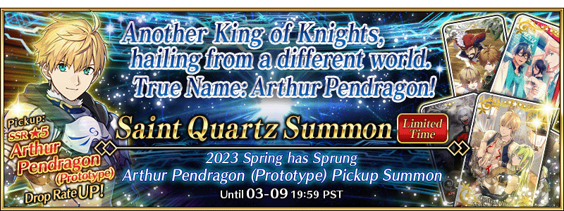 "2023 Spring has Sprung Arthur Pendragon (Prototype) Pickup Summon" Details: