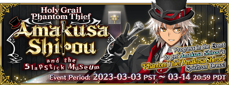 - Clear Main Quest Final Section of the Limited Time Event "Holy Grail Phantom Thief Amakusa Shirou and the Slapstick Museum".