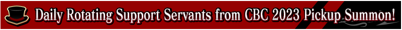 Pickup Servants from Limited Time Summon "Chaldea Boys Collection 2023 Pickup Summon" will be available as support Servants for Free Quests within "Holy Grail Phantom Thief Amakusa Shirou and the Slapstick Museum" on a rotating daily schedule!